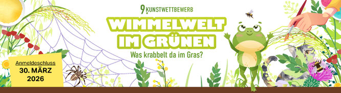 Du bist in der 4. bis 10. Klasse und künstlerisch kreativ? Dann mach mit bei unserem Kunstwettbewerb, der dieses Jahr unter dem Motto steht „Wimmelwelt im Grünen - Was krabbelt da im Gras“.