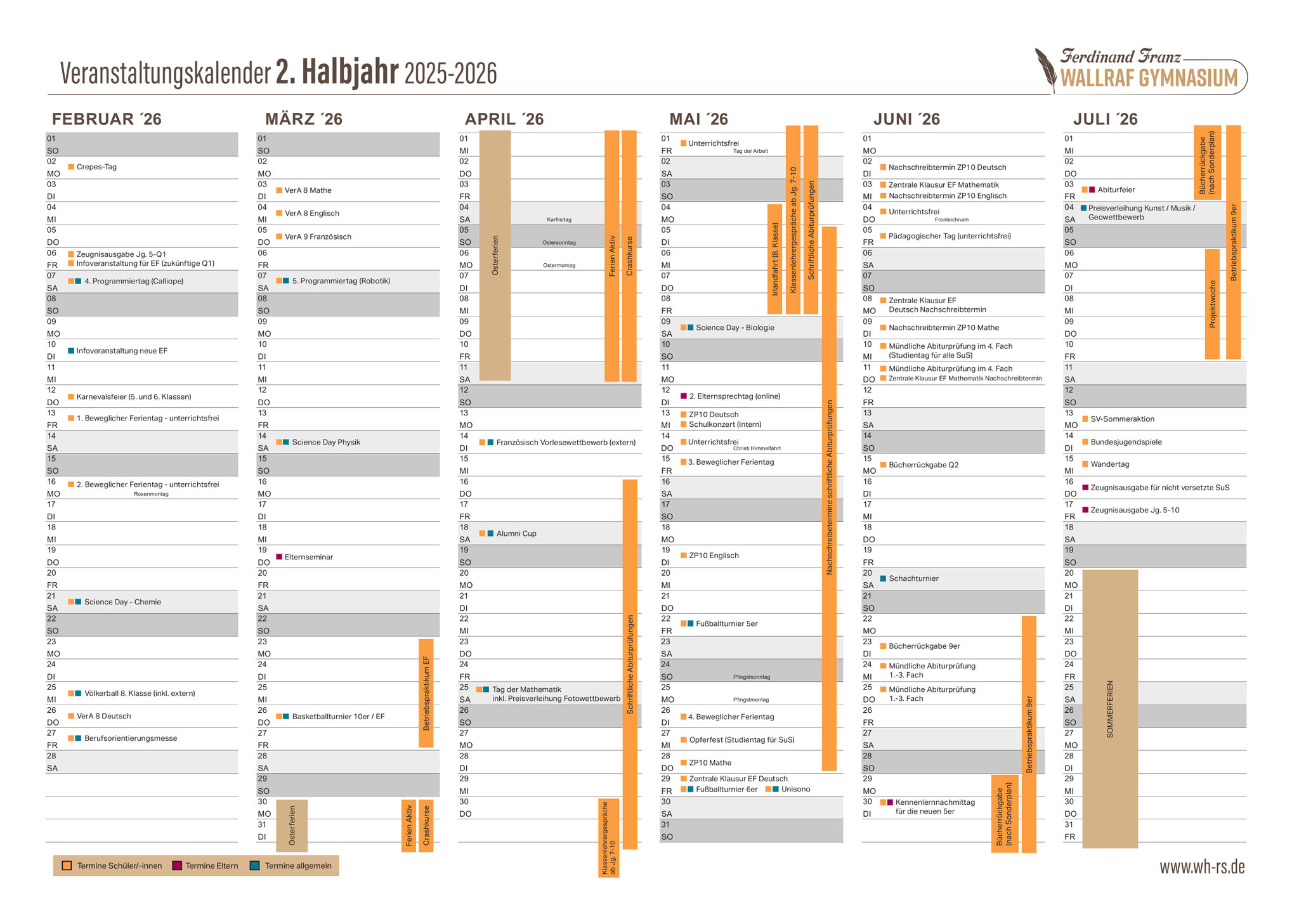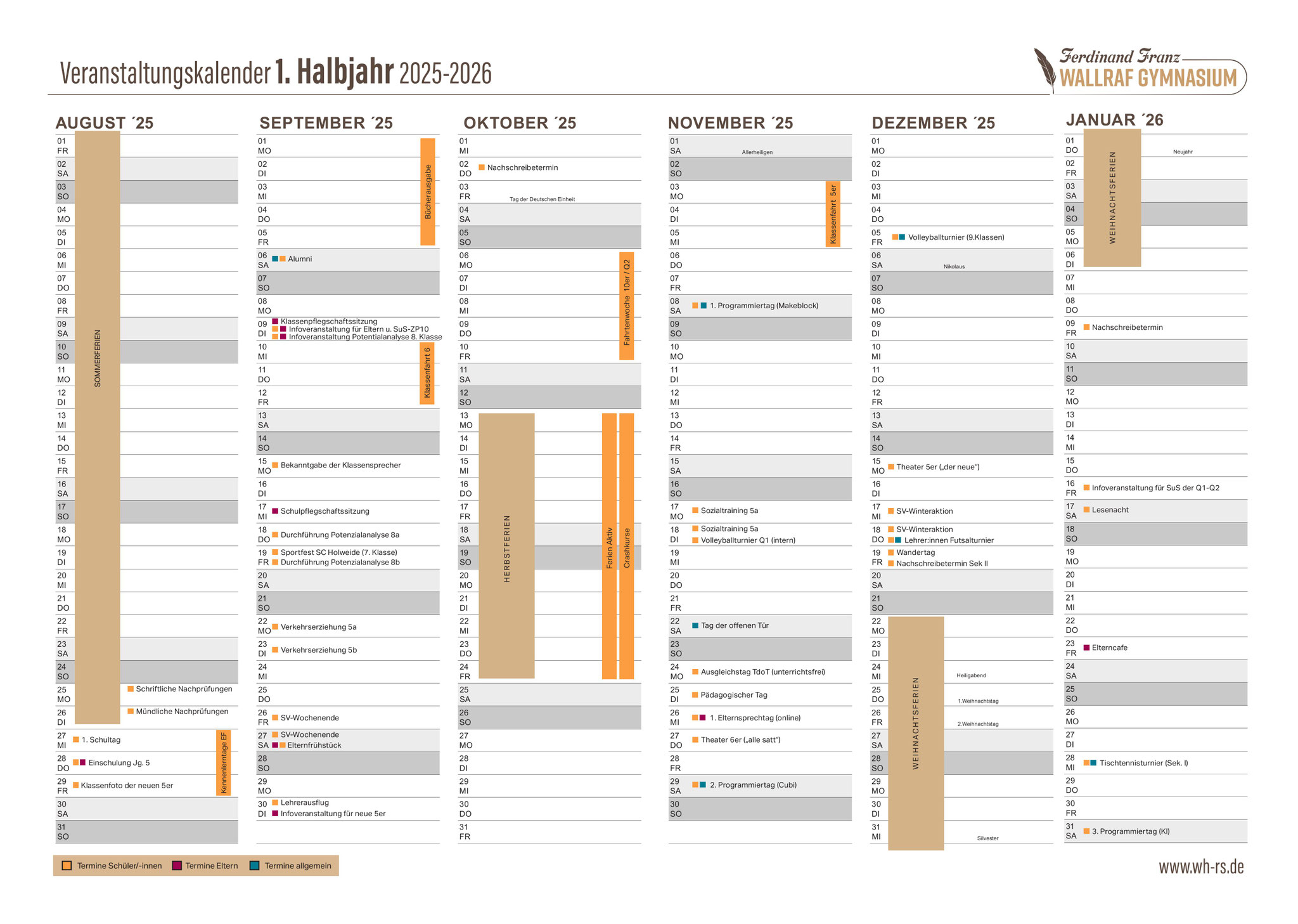 Mit Hilfe unseres Veranstaltungskalenders können unsere Schülerinnen und Schüler und ihre Eltern langfristig planen und unsere Angebote optimal nutzen.